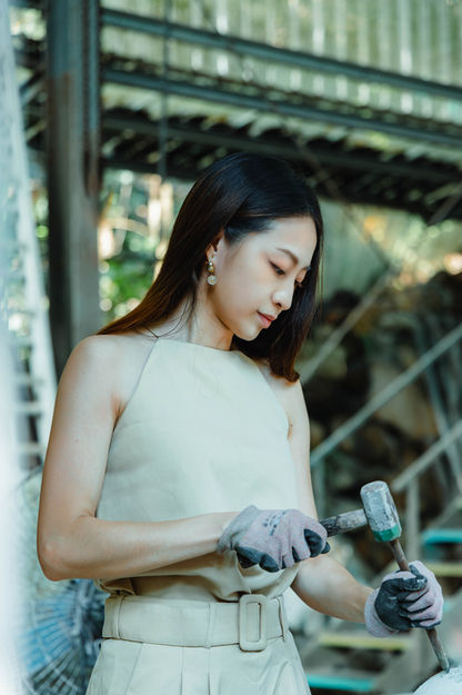 在專業引導下親手拿起鐵鎚與鑿子,體驗雕刻石材的第一步。透過一敲一鑿的節奏,感受手與石頭的直接連結,最後的打磨階段是向內探索的旅程,引導你與石對話、與自己對話,同時觀察材質回應的方式,讓你在過程中初步體會石雕創作的樂趣。